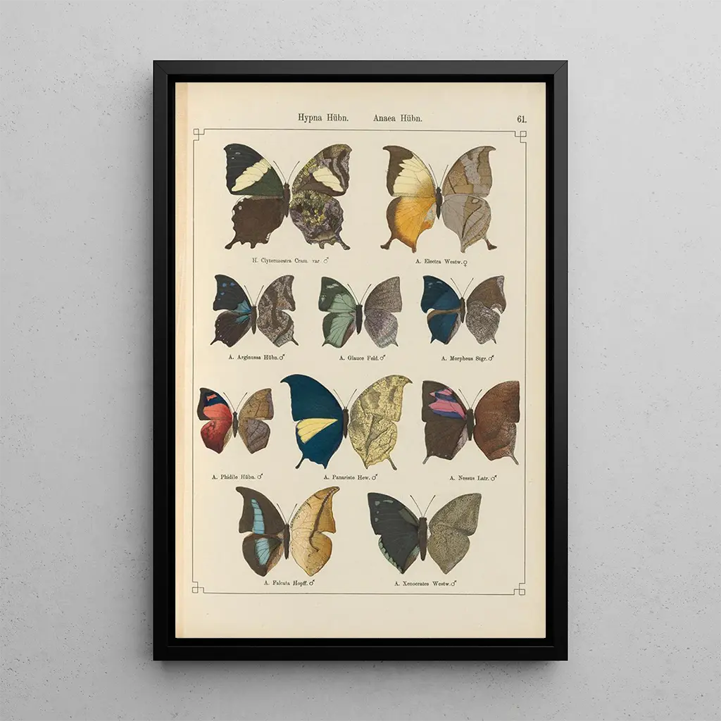 Les "Papillons exotiques Pl061" d'Otto Staudinger capturerar essensen av den vibrerande biodiversiteten. Kanvasen blir livfull tack vare en palett av klara färger, där nyanser av blått, gult och rött blandas harmoniskt. Konstnärens teknik, som kombinerar precision och finhet, gör det möjligt att återge varje detalj av fjädrarna på fjärilarna med en anmärkningsvärt finstämdhet. Atmosfären som utstrålar av detta konsttryck är både glad och lugnande, inbjudande betraktaren att fördjupa sig i en värld där naturen blomstrar i all sin prakt.