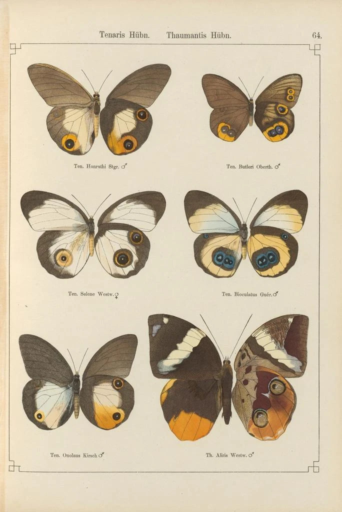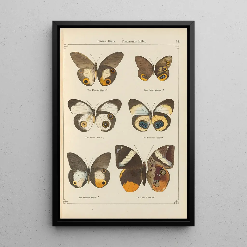 Otto Staudinger, illustratör och entomolog från 1800-talet, präglade sin tid med sina verk som förenar konst och vetenskap. Hans naturalistiska tillvägagångssätt gjorde det möjligt för honom att fånga fjärilarnas skönhet med precision, samtidigt som han bidrog till den vetenskapliga kunskapen om dessa arter. Påverkad av tidens upptäckter lyckades Staudinger göra sina illustrationer till både estetiska och pedagogiska verk. Hans konsttryck, som Papillons exotiques Pl064, vittnar om hans talang och engagemang för naturen, vilket gör honom till en oumbärlig konstnär inom konstnärlig entomologi.