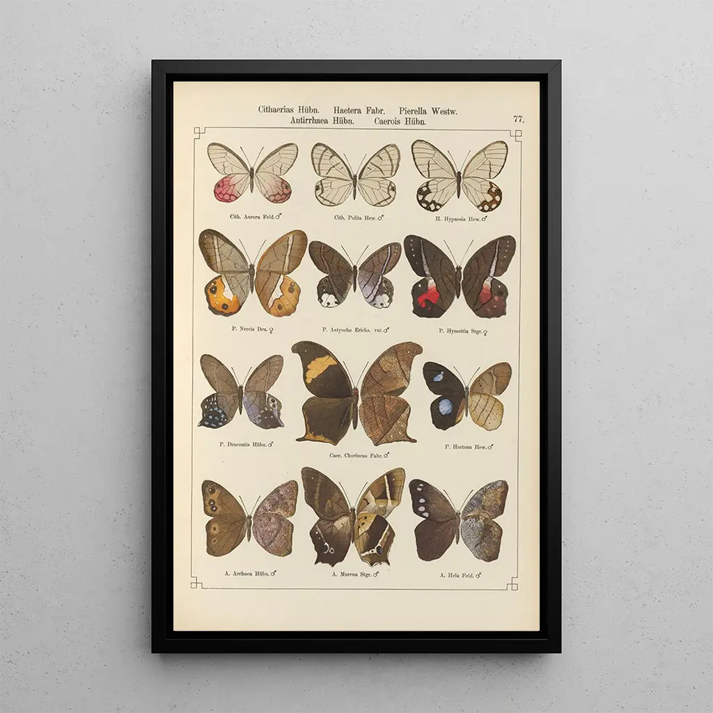 I denna konsttryck av Papillons exotiques Pl077, bjuder Otto Staudinger in oss att dyka in i en livfull värld av färger och former. Fjärilarna, varsamt placerade på en ljus bakgrund, verkar komma till liv inför våra ögon. Nyanser av blått, gult och orange blandas harmoniskt och skapar en atmosfär som är både glad och lugnande. Akvarelltekniken, använd med fin precision, fångar lättheten och elegansen hos dessa fascinerande insekter, samtidigt som den ger ett visuellt djup som drar till sig blickar. Varje detalj är noggrant återgiven, vilket vittnar om konstnärens noggranna observation.