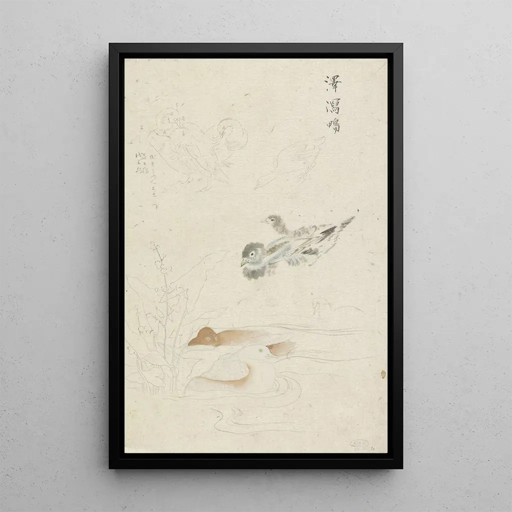 Målning Fåglar i vattnet - Ishikawa Kazan | Konsttryck