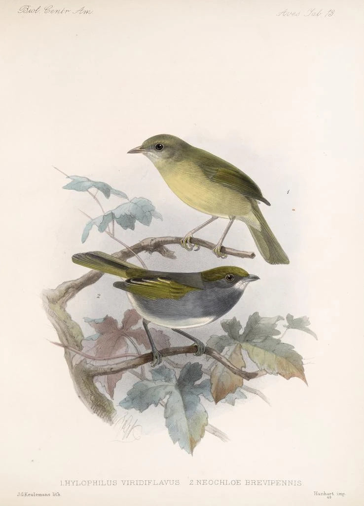 Konsttrycket Aves Pl 13 av Frederick DuCane Godman förflyttar oss till en värld där fåglar blomstrar i all sin prakt. Varje detalj, från de delikata fjädrarna till de graciösa poser, återges med en anmärkningsvärt noggrann precision. De livfulla och varierade nyanserna, från glänsande grönt till ljusa gult, skapar en glad och livfull atmosfär. Detta konsttryck, utfört med en förfinad akvarellteknik, inbjuder till eftertanke och förundran inför den fågelrika mångfalden.