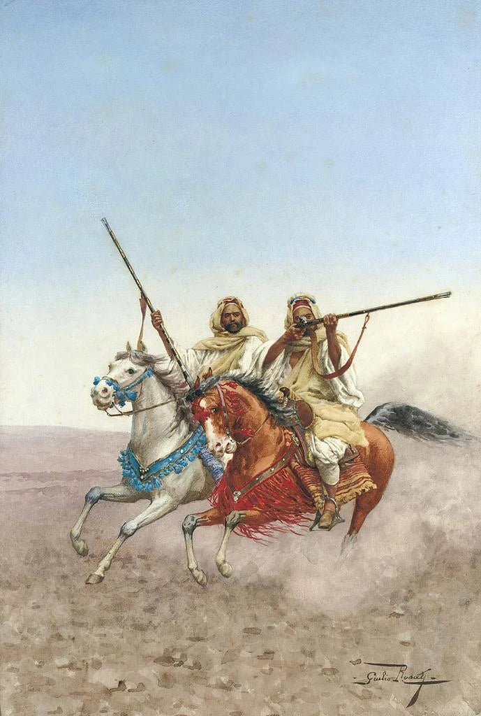 Giulio Rosati, italiensk målare från 1800-talet, är mest känd för sina orientaliserade konsttryck som fångar skönheten och exotismen hos östliga kulturer. Hans karriär präglades av en serie resor som djupt påverkade hans konstnärliga uttryck. Rosati lyckades integrera element från arabisk och nordafrikansk kultur i sina kompositioner, samtidigt som han behöll en raffinerad teknisk approach. Hans stil, kännetecknad av livfulla färger och noggranna detaljer, har gjort honom till en ikonisk representant för orientalism, en konstnärlig rörelse som fascinerade Europa under sin tid.