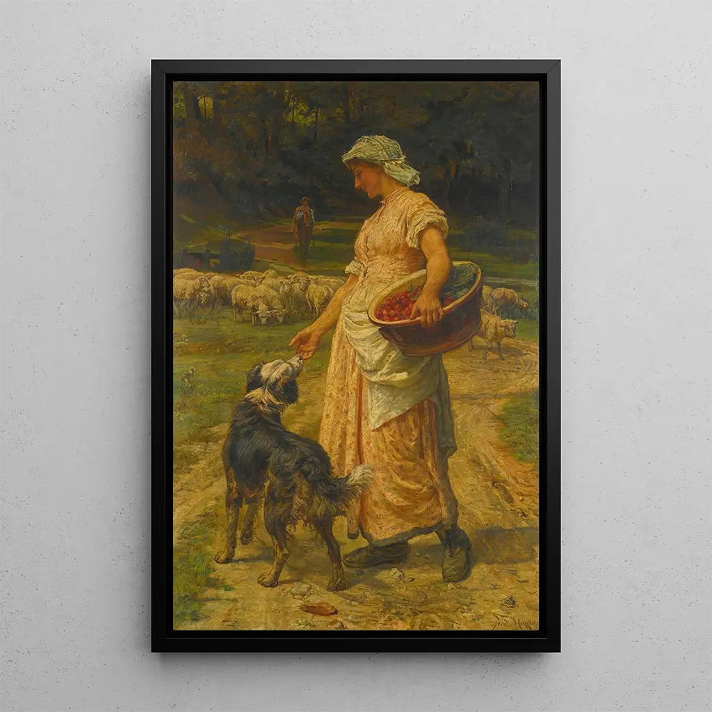Frederick Morgan, verksam i slutet av 1800-talet och början av 1900-talet, är känd för sina idealiserade skildringar av landsbygdsliv och unga kvinnor. Påverkad av pre-rafaelitiska rörelsen, specialiserade han sig på verk som väcker nostalgi och naturens skönhet. Hans tavlor, ofta fyllda med en drömsk atmosfär, fångar enkla men känslosamma ögonblick i livet. Morgan lyckades skapa sig en plats i konstälskarens hjärta tack vare sin förmåga att kombinera fin teknik med känslighet. La bergère är ett av hans ikoniska verk, som perfekt illustrerar hans stil och hans förkärlek för idylliska teman.