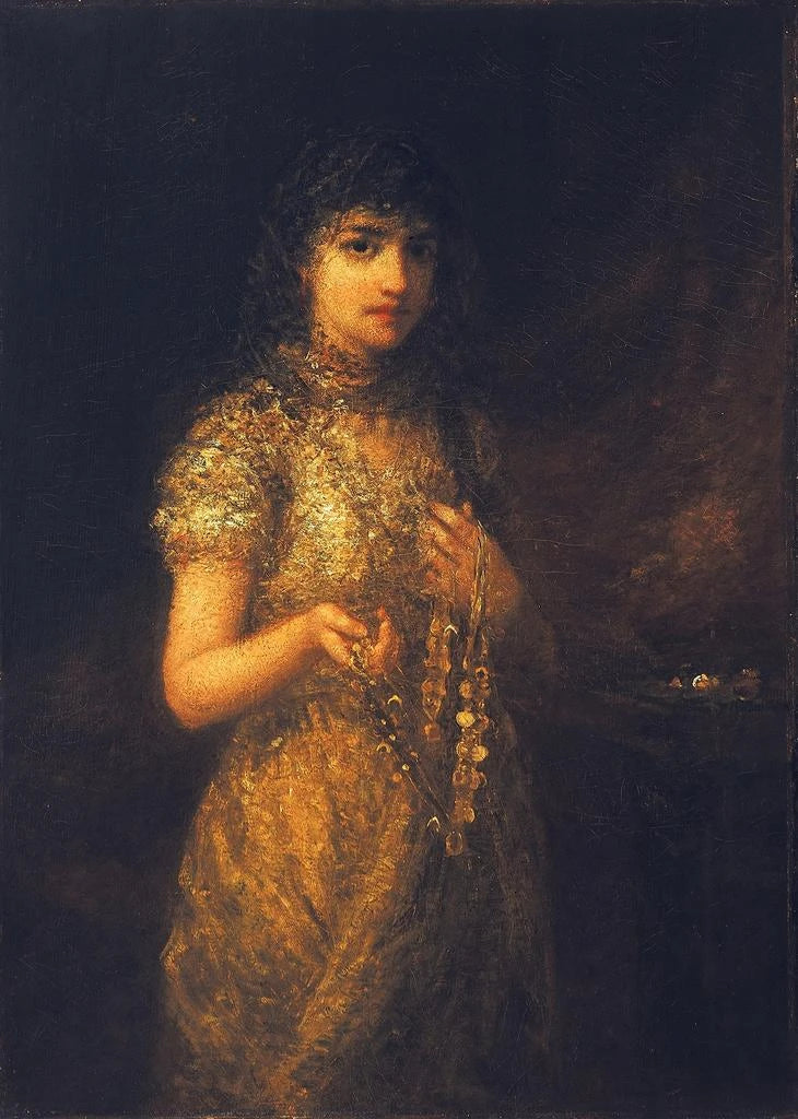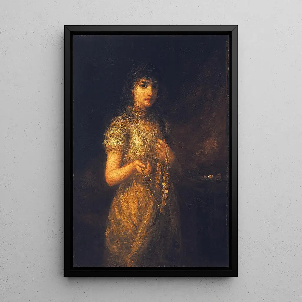 Konsttrycket av Fedalma, ett ikoniskt verk av George Fuller, framkallar en känsla av elegans och sensualitet som fängslar betraktarens blick. I denna målning blandas varma färger med mjuka nyanser, vilket skapar en intim atmosfär. Fullers teknik, som förenar realism med en impressionistisk touch, möjliggör att fånga ljusets subtiliteter på modellens hud. Fedalmas graciösa hållning, liksom de noggranna detaljerna i hennes klädsel, vittnar om ett enastående hantverk. Detta verk inbjuder till djup eftertanke och avslöjar den flyktiga skönheten i kvinnlighet.