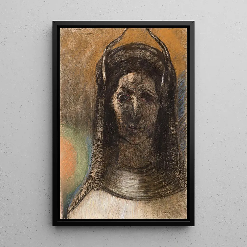 Odilon Redon, figure emblématique du mouvement symboliste, a marqué la fin du XIXe siècle par son approche unique de l'art. Né en 1840 à Bordeaux, il a été influencé par des artistes comme Gustave Moreau et des écrivains tels que Charles Baudelaire. Redon a su s'éloigner des conventions de son époque pour explorer des thèmes mystiques et psychologiques. Son travail, souvent empreint de rêves et de visions, reflète une quête de sens et une exploration de l'inconscient. La Figure cornue s'inscrit parfaitement dans cette démarche, témoignant de son intérêt pour les symboles et les représentations de l'âme humaine.