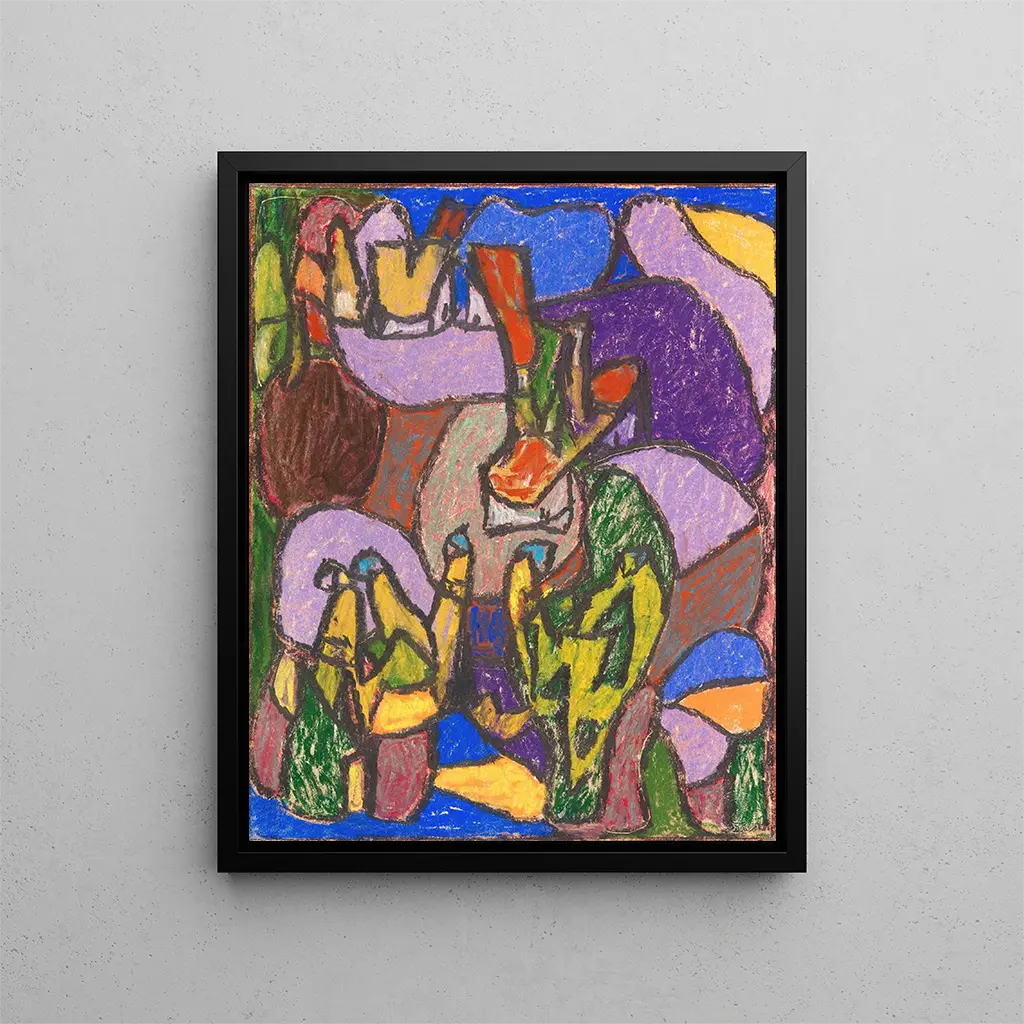 L'œuvre "Figures sans titre" av Adolf Hölzel förenar en fascinerande visuell utforskning som överskrider gränserna för enkel representation. I detta verk bjuder konstnären in oss att dyka in i en värld där form och färg möts i en harmonisk dans. Hölzel, en ikonisk figur i början av 1900-talet, lyckas fånga essensen av abstraktion genom att leka med stilistiska element som väcker fantasin. Detta konsttryck ger möjlighet att beundra ett arbete där varje streck, varje nyans, verkar berätta en unik historia, vilket gör den kontemplativa upplevelsen ännu rikare.