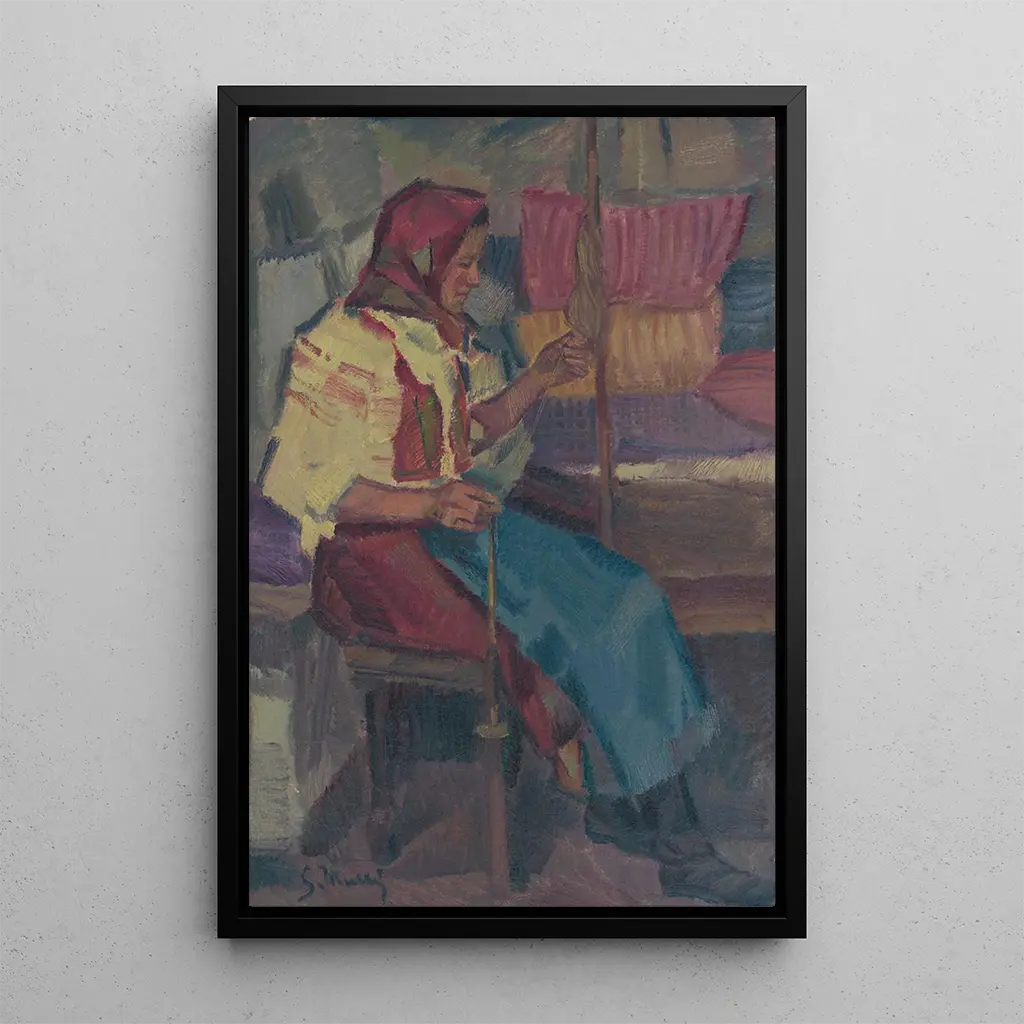 Konsttrycket av "Fileuse de Mork Hj" fångar essensen av ett ögonblick som är fruset i tiden, där tradition och hantverk möts. De varma och jordnära färgerna på duken framkallar en atmosfär av komfort och äkthet. Konstnärens teknik, kännetecknad av noggranna detaljer och en harmonisk komposition, för oss in i den handgjorda arbetsvärlden. Varje element i verket verkar berätta historien om ett liv ägnat åt spårning, och erbjuder en poetisk syn på detta uråldriga yrke. Denna duk inbjuder oss att uppskatta skönheten i enkla gester och kunskaper som förmedlas från generation till generation.