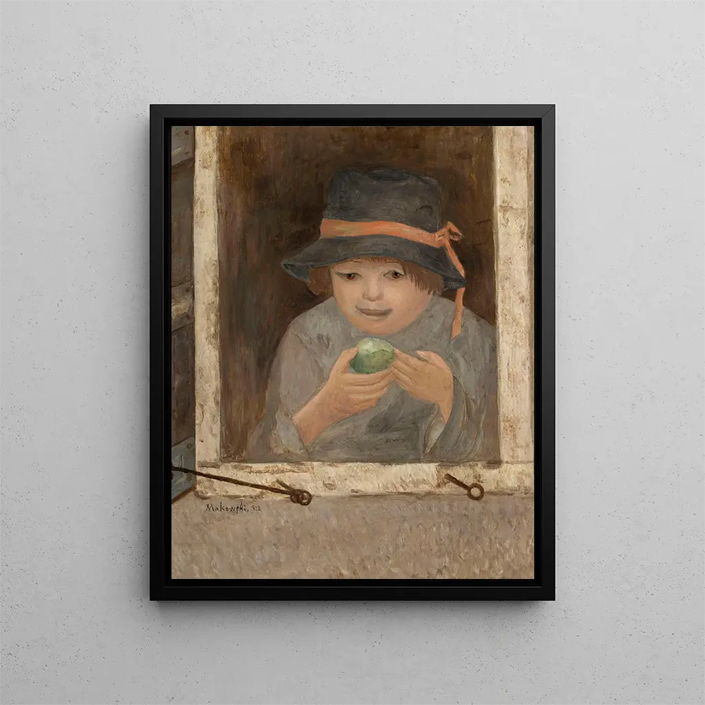 Fille avec une pomme à la fenêtre - Tadeusz Makowski