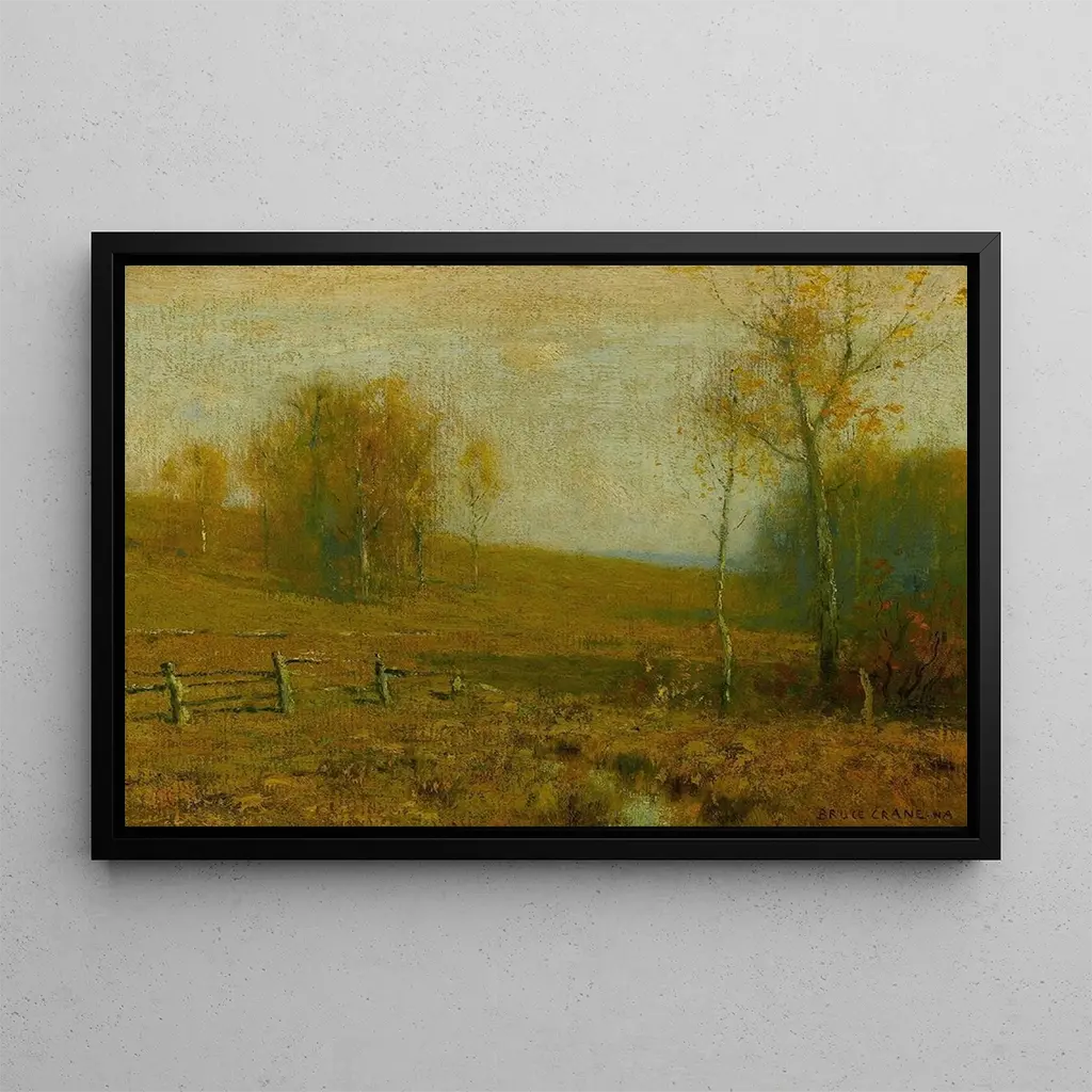 Bruce Crane, actif à la fin du XIXe et au début du XXe siècle, est reconnu pour ses paysages impressionnistes qui capturent la beauté éphémère de la nature. Influencé par l'école de Barbizon et le mouvement impressionniste, il a su développer un style unique qui marie réalisme et poésie. Ses œuvres, souvent inspirées par les paysages américains, témoignent d'une sensibilité particulière envers les variations de la lumière et des saisons. Crane a joué un rôle essentiel dans la promotion de l'art paysager américain, et son héritage perdure à travers ses reproductions, qui continuent d'inspirer les amateurs d'art.