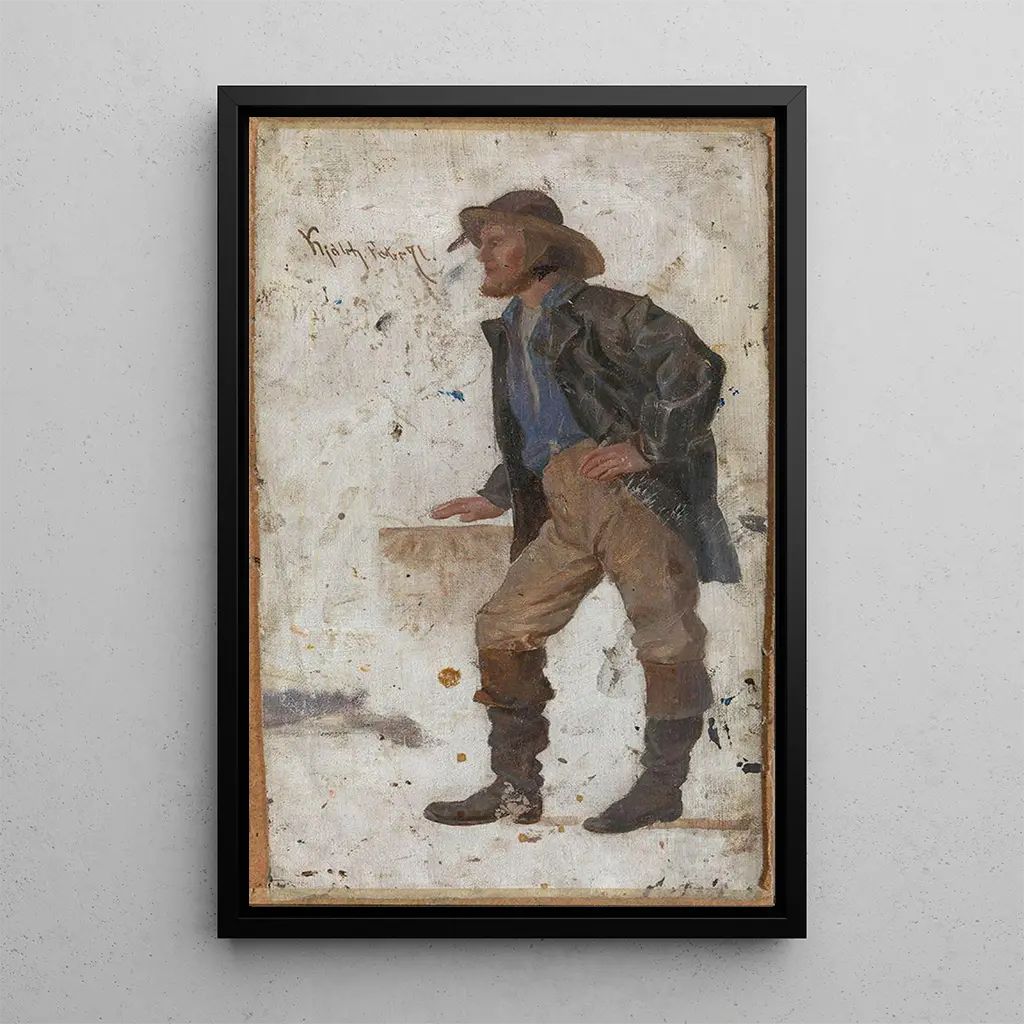 Konsttryck av Pêcheur av Frederik Collett fångar en lugn och eftertänksam atmosfär. Denna målning förmedlar ett upphört ögonblick, där fiskaren, med en fin silhuett, smälter harmoniskt in i det vattenfyllda landskapet. De mjuka färgerna, från lugnande blå nyanser till subtila gröna, skapar en fridfull stämning. Colletts teknik, med sina flytande penseldrag, ger liv åt det glittrande vattnet och reflektionerna av de omgivande träden. Denna konsttryck inbjuder till drömmande tankar, till flykt till lugna kuster, där tiden tycks stå stilla.