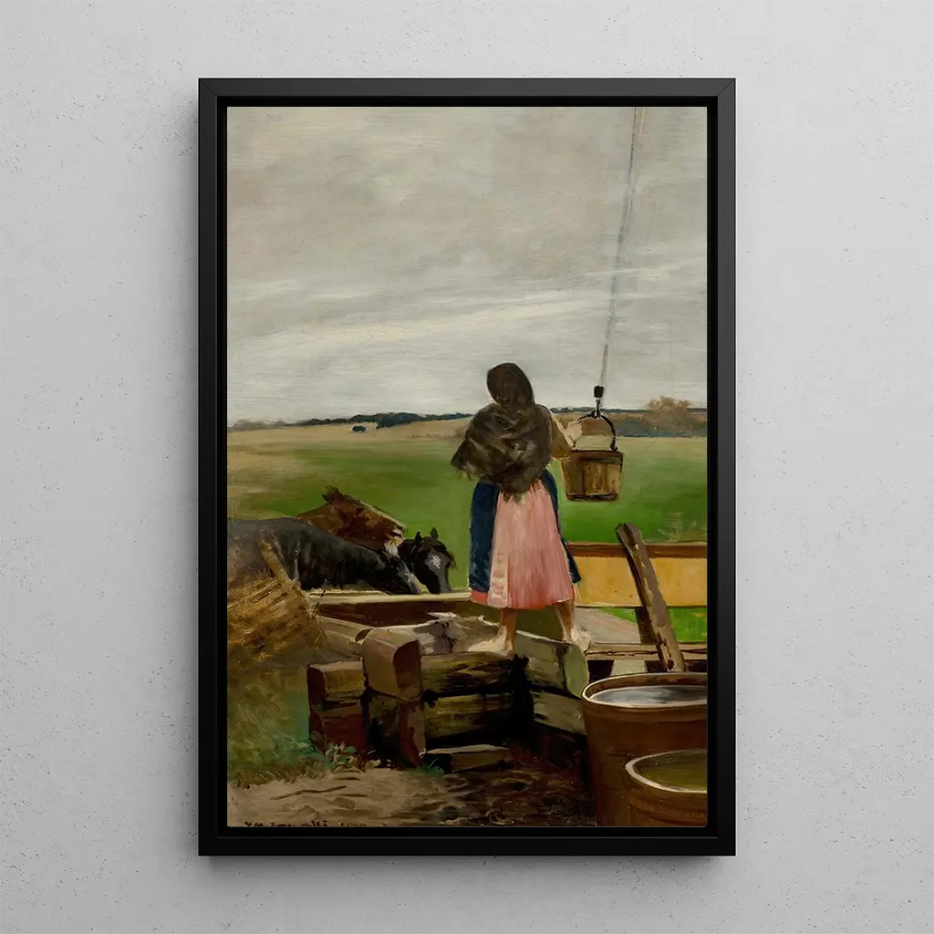 Konsttrycket av "Flicka vid en brunn" är ett charmigt tillskott till vilken inredning som helst, oavsett om det är i ett vardagsrum, ett kontor eller ett sovrum. Dess utskriftskvalitet och detaljrikedom garanterar en anmärkningsvärt trogen återgivning av originalverket, samtidigt som det tillför en touch av elegans och mildhet. Denna tavla, med sin delikata skildring av ungdom, inbjuder till drömmande reflektion och eftertanke, och skapar en lugn och inspirerande atmosfär. Genom att välja detta konsttryck berikar du din omgivning med ett konstverk som hyllar skönheten och livets skörhet.