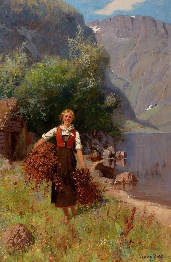 Hans Dahl, född 1849, är en norsk konstnär erkänd för sina idylliska landskap och scener ur vardagslivet. Påverkad av den romantiska rörelsen, lyckades han fånga essensen av det norska naturen med en unik känslighet. Hans karriär sträcker sig över slutet av 1800-talet och början av 1900-talet, perioder då han skapade många verk som idag anses vara ikoniska för skandinavisk konst. Dahl har också påverkats av sina resor i Europa, och integrerat element från olika stilar i sitt arbete. Hans förmåga att framkalla känslor genom naturliga landskap har gjort honom till en viktig figur inom nordisk konst.
