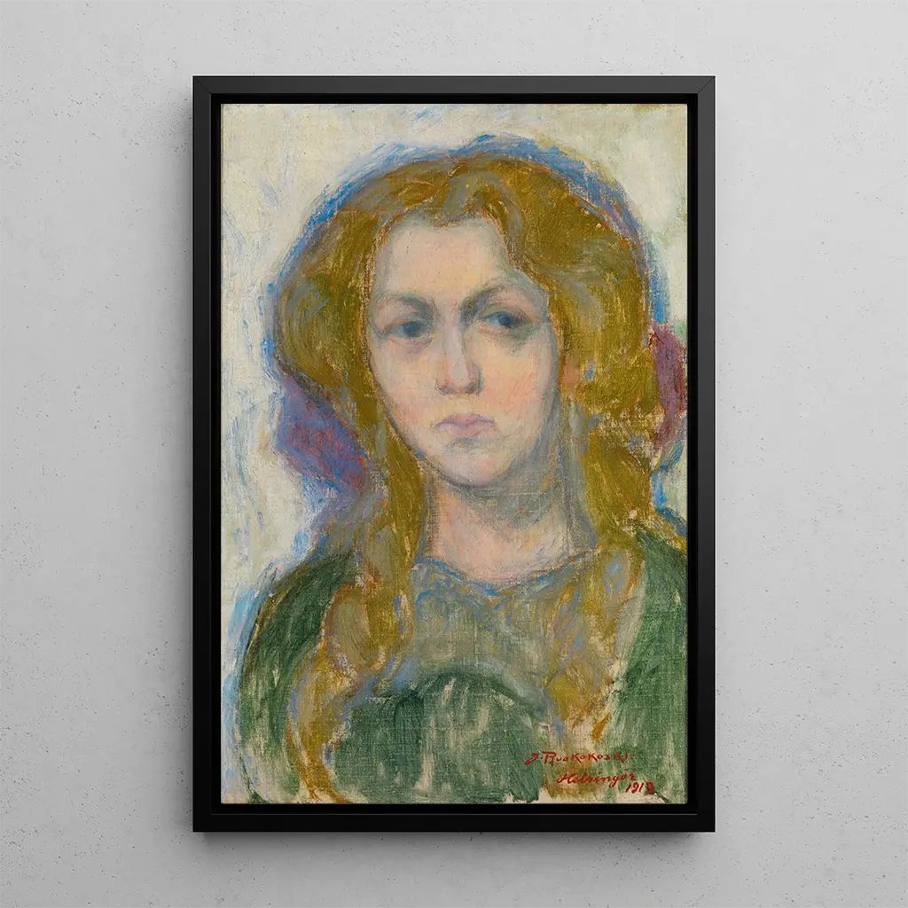 Konsttrycket av verket "Fille" av Jalmari Ruokokoski fördjupar oss i en finstämd värld där ljuset subtilt smeker flickans drag. Pastellfärger, som blandar nyanser av rosa och blått, skapar en lugn och drömsk atmosfär. Konstnärens teknik, som förenar realism med en impressionistisk touch, fångar det flyktiga ögonblicket av en tanke eller känsla. Flickans blick, både oskyldig och tankfull, inbjuder betraktaren att reflektera över sin inre värld, vilket gör detta konsttryck djupt rörande och uttrycksfullt.