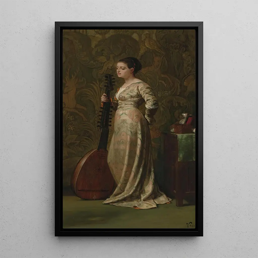Konsttryck | Flicka med en lut - Elihu Vedder