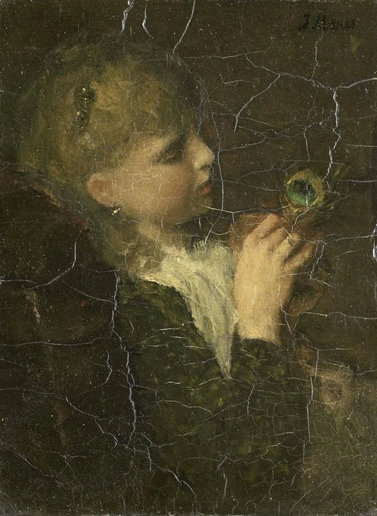 Målning Fille med en påfugl fjærsprøyt - Jacob Maris | Konsttryck