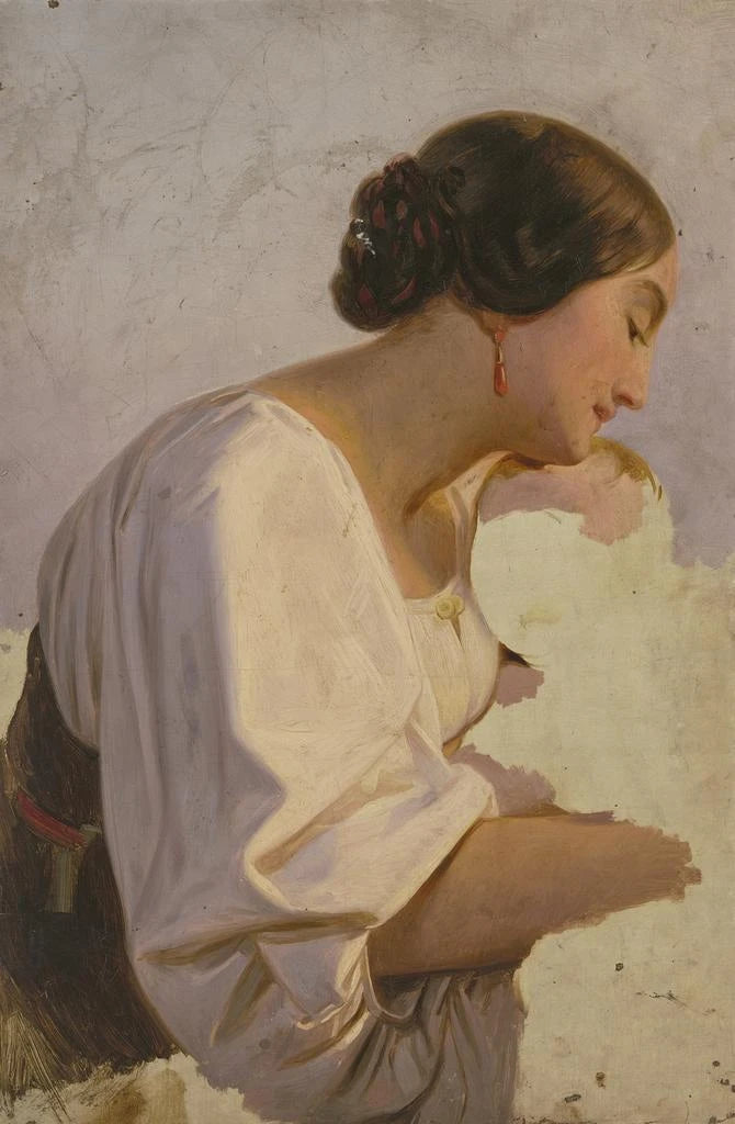 Jakob Becker, tysk målare från 1800-talet, är känd för sina slående porträtt som fångar essensen av sina motiv. Påverkad av den romantiska rörelsen lyckas han förena akademisk teknik med personlig känslighet. Becker har lyckats göra sig ett namn inom konstvärlden tack vare sin förmåga att skildra kvinnlig skönhet med enastående finhet. Hans verk, ofta inspirerade av vardagslivet och traditioner, vittnar om en tid då porträtt var ett privilegierat uttrycksmedel. Konsttrycket av "Fille med örhängen" passar perfekt in i denna tradition och ger en inblick i hans talang och konstnärliga engagemang.