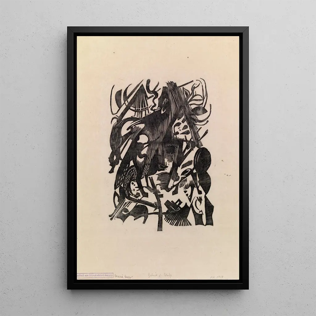 Naissance des loups : en hyllning till den vilda naturen Den konsttryck av verket "Naissance des loups" av Franz Marc framkallar en livfull och vild atmosfär. De strålande färgerna, främst blå och gula, blandas för att skapa en dynamisk scen där vargarna, symboler för frihet och styrka, tycks bli levande. Konstnärens teknik, som använder förenklade former och flytande konturer, gör det möjligt att känna den råa energin i naturen. Varje penseldrag verkar fånga rörelsen och själen hos djuren, vilket inbjuder betraktaren att dyka in i en värld där naturen råder. Franz Marc: en pionjär inom fauvism och expressionism Franz Marc, en ikonisk figur i början av 1900-talet, är erkänd för sin centrala roll i expressionismrörelsen. Påverkad av fauvism och symbolism, utvecklade han en unik stil, kännetecknad av djärva färgval och former. Hans verk, ofta fyllda med djur, speglar hans vision av en ren och andlig natur, i motsats till den industriella moderniteten. Marc var medgrundare av gruppen Der Blaue Reiter, som spelade en avgörande roll i utvecklingen av modern konst. Hans förmåga att förmedla djupa känslor genom sina djurrepresentationer har lämnat ett outplånligt avtryck i konsthistorien. En dekorativ tillgång med många fördelar Att välja ett konsttryck av verket "Naissance des loups" i ditt hem är att tillföra en touch av energi och natur till din inredning. Oavsett om det är i ett vardagsrum, ett kontor eller ett sovrum, drar denna målning till sig blickar och väcker samtal. Dess tryckkvalitet garanterar trohet mot färger och detaljer i originalverket, samtidigt som det tillför en konstnärlig dimension till ditt utrymme. Med sin obestridliga estetiska attraktion blir detta konsttryck en verklig blickfångare, som berikar din omgivning med en vild och tidlös skönhet.