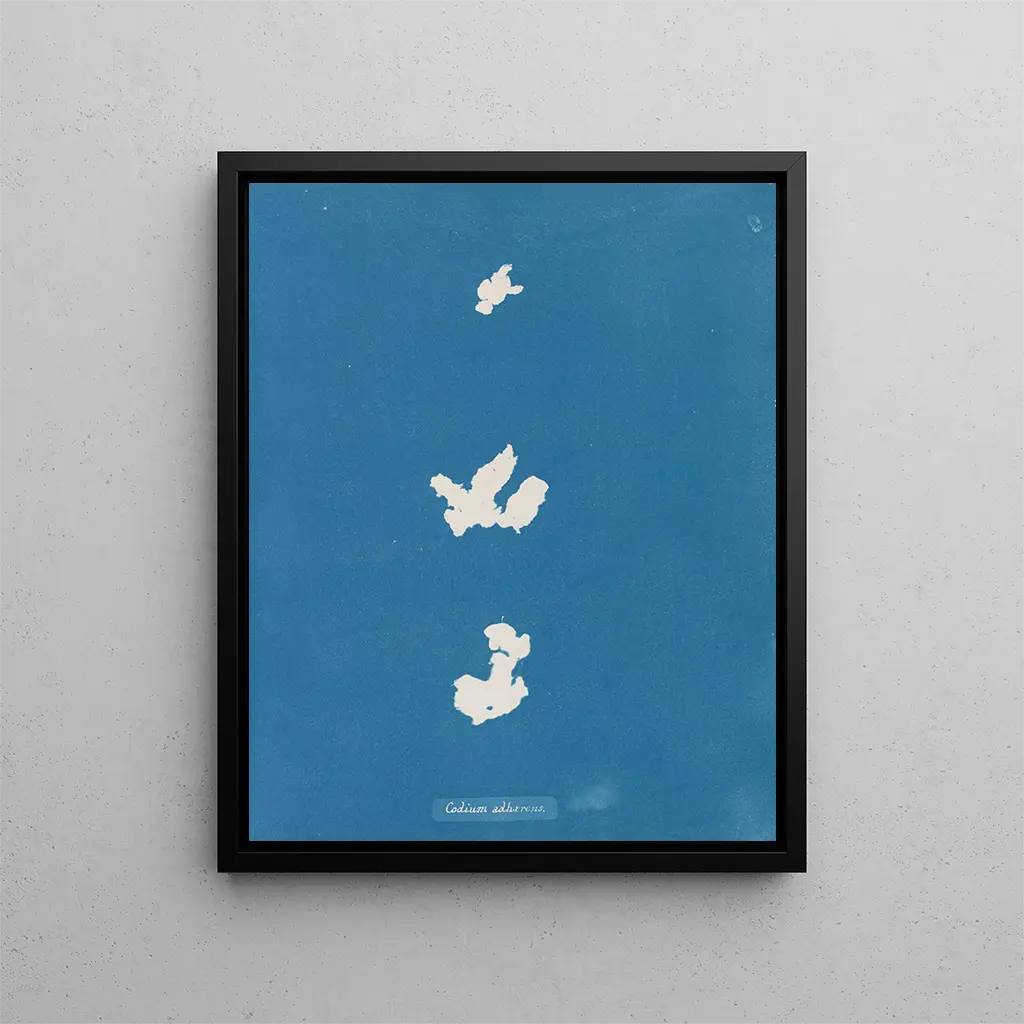 L'œuvre d'Atkins se distingue par son utilisation pionnière de la cyanotype, une technique de tirage photographique qui produit des impressions d'un bleu intense. Cette méthode, qui lui permet de créer des images d'une clarté saisissante, est parfaitement adaptée à la représentation des plantes, dont les formes délicates et les textures sont mises en valeur par le contraste des couleurs. "Adhérer au code" ne se contente pas de konsttryck des spécimens botaniques ; elle évoque également une poésie visuelle, où chaque détail est minutieusement observé et rendu avec une précision presque scientifique. La composition de l'œuvre invite à une contemplation profonde, éveillant une sensibilité à la beauté éphémère de la nature, tout en soulignant l'importance de la documentation scientifique.