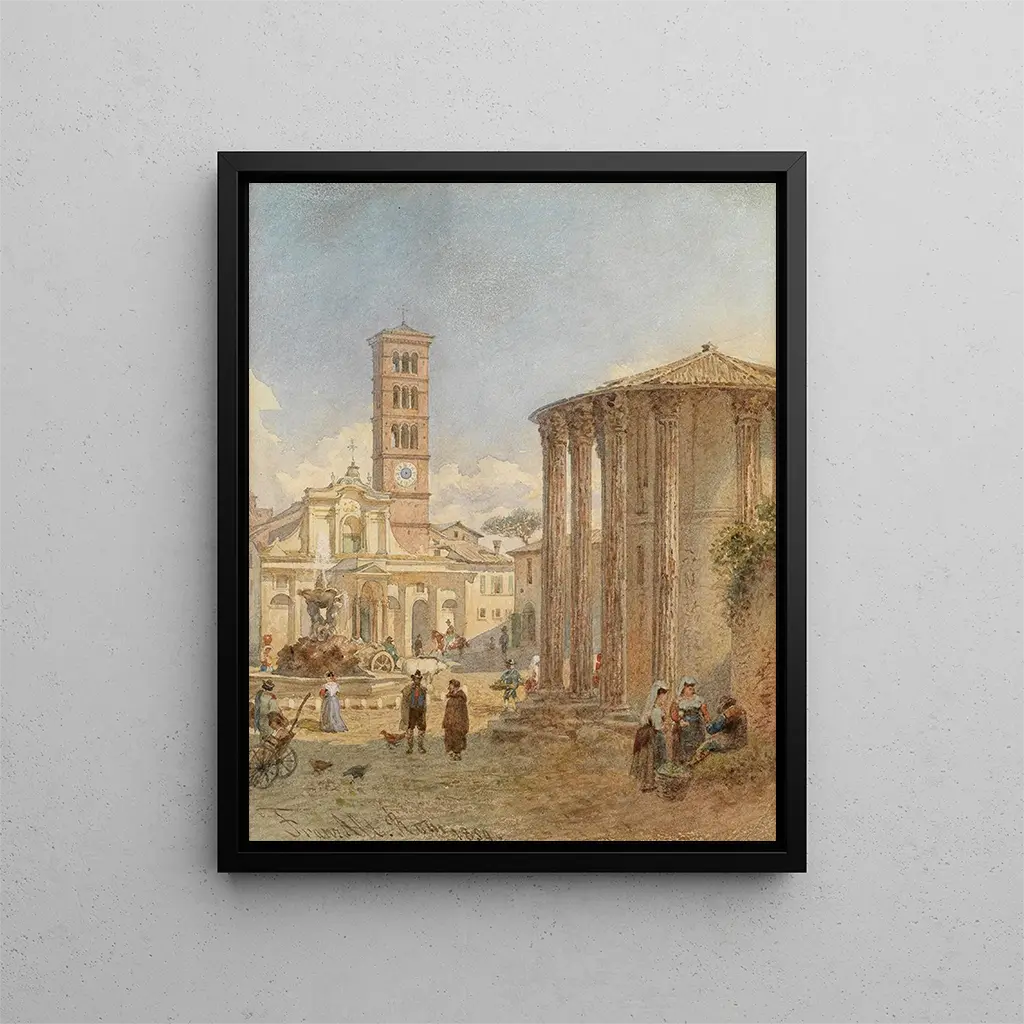 Franz Alts stil kännetecknas av en exceptionell behärskning av ljus och färg, vilket ger hans konsttryck en nästan magisk dimension. I "Forum Rom Boarium" lyckas konstnären fånga själva essensen av den romerska arkitekturen, samtidigt som han tillför ett livfullt liv. De minutiösa detaljerna i kolumner och statyer, kombinerat med en varm färgpalett, skapar en atmosfär av intimitet och storhet. Varje penseldrag verkar berätta en historia, och betraktaren är inbjuden att absorbera stämningen av en plats där tiden tycks stå stilla. Detta konsttryck utmärker sig genom sin skicklighet att förena realism med en touch av romantik, vilket framhäver skönheten i ruinerna och deras emotionella laddning.