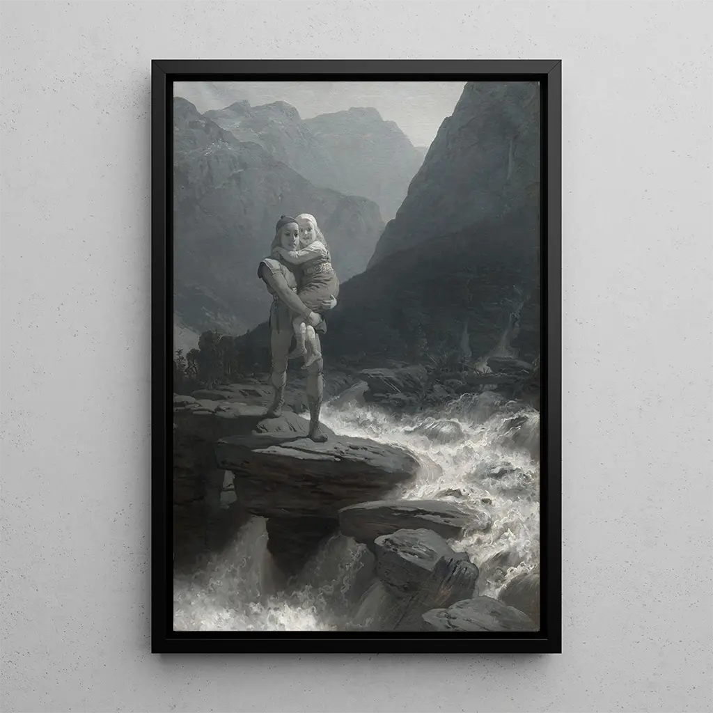 "Frithiof och Ingeborg" är ett verk som väcker passion och melankoli i en mytisk kärlek. I denna målning skildrar August Malmström en romantisk scen inspirerad av den nordiska legenden, där de två huvudpersonerna möts i en förtrollande naturlig miljö. Mjuka färger och delikata detaljer skapar en poetisk atmosfär, som förflyttar betraktaren till en drömvärld fylld av känslor. Den harmoniska kompositionen och den subtila användningen av ljus förstärker känslans intensitet, vilket gör detta konsttryck till ett verkligt mästerverk inom romantisk konst.