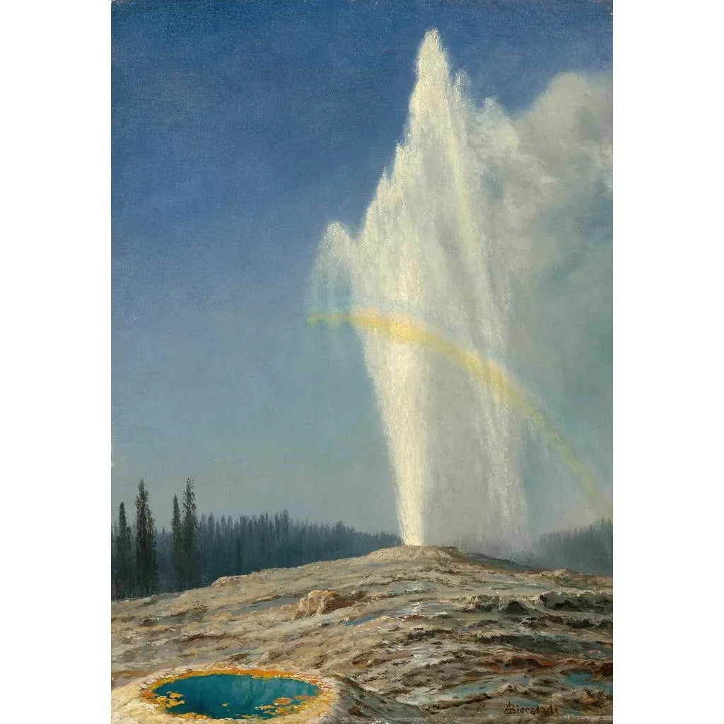 Konsttrycket av Old Faithful av Albert Bierstadt fångar själva essensen av den naturliga kraften. Denna ikoniska tavla föreställer den berömda gejsern i Yellowstone nationalpark, som skjuter en kolonn av kokande vatten i luften. De livfulla och dynamiska färgerna, som blandar nyanser av blått och vitt, framkallar en atmosfär som är både dramatisk och fascinerande. Biertstadts skicklighet i att återge de naturliga elementen skapar en känsla av rörelse och energi, vilket gör detta konsttryck till en verklig hyllning till naturens kraft.