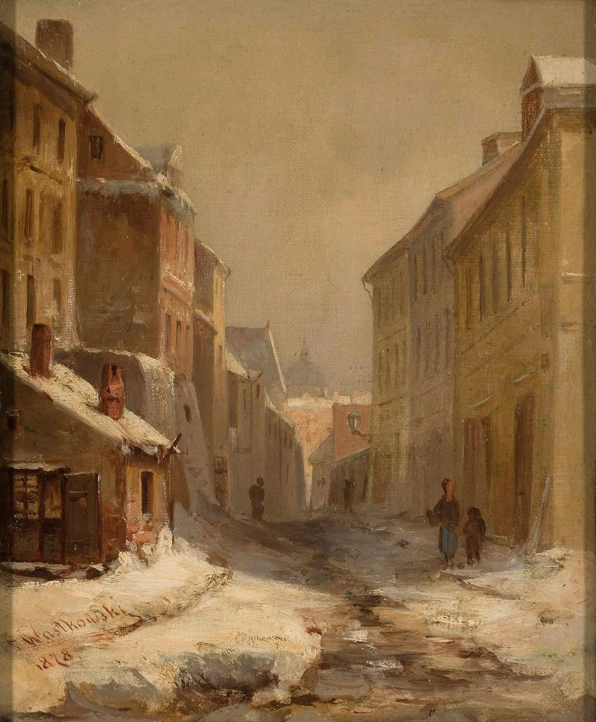 Konsttryck | Gamla Warszawa på vintern, Brzozowa-gatan - Franciszek Wątkowski