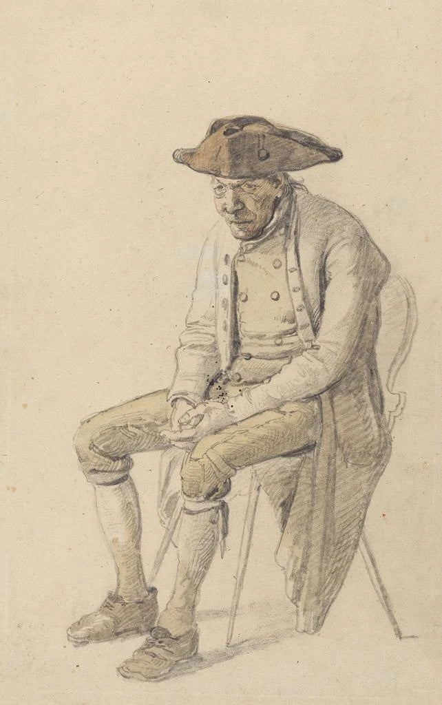 Vieux paysan assis avec tricorne : ett porträtt fyllt av visdom