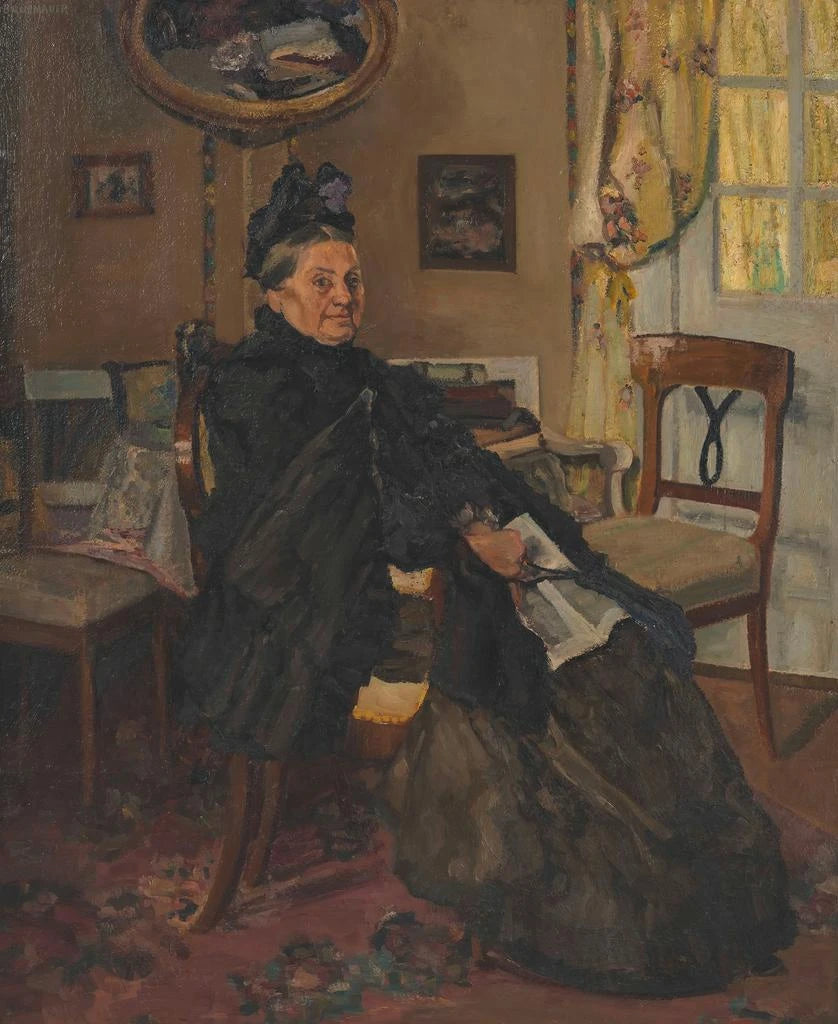 Gammal kvinna sittande i väntrummet - Otto Bruenauer