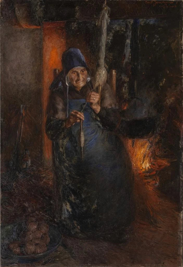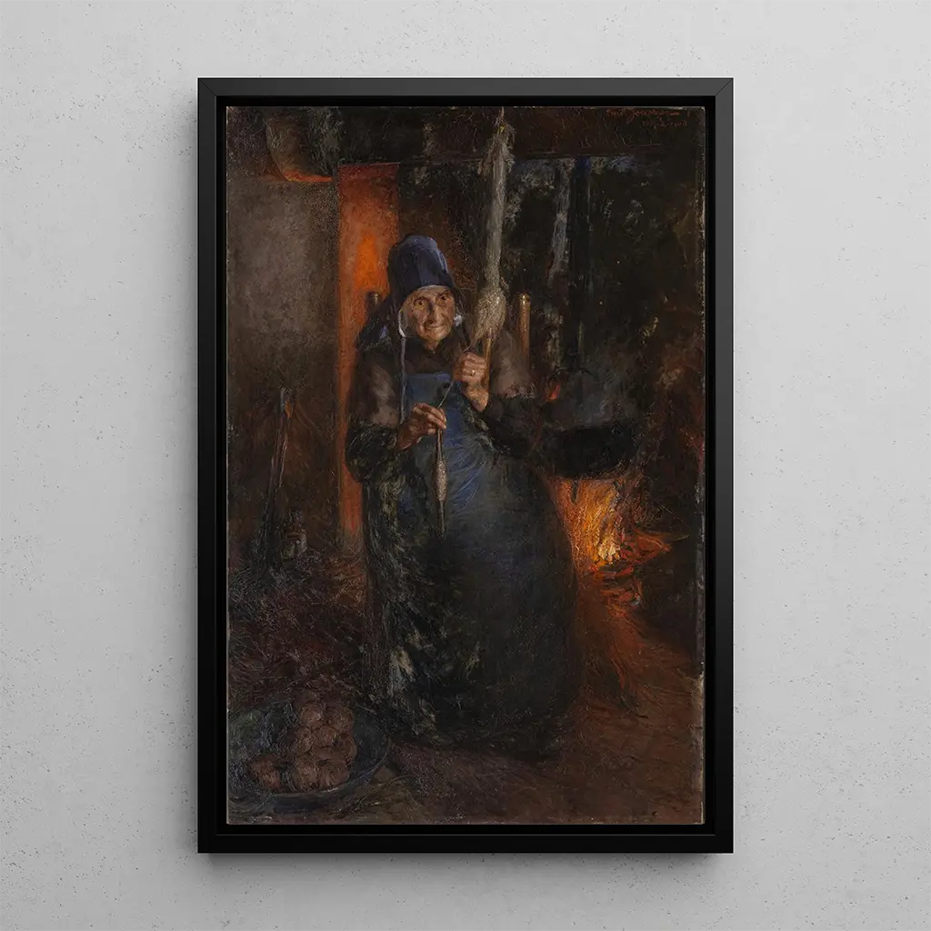 Målning av gammal kvinna som spinner - Ernst Josephson | Konsttryck