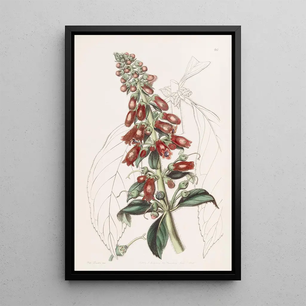 Sydenham Edwards, verksam i början av 1800-talet, är erkänd som en av de första botaniska illustratörerna av sin tid. Påverkad av den romantiska rörelsen, lyckades han kombinera vetenskaplig precision med konstnärlig känsla i sina verk. Hans illustrationer, inklusive Gesnera med långa blad, vittnar om hans engagemang för att dokumentera växtligheten med en förfinad estetik. Edwards bidrog också till viktiga publikationer, som den berömda "Botanical Register", vilket möjliggjorde att hans verk nådde en bred publik. Hans arv består, och fortsätter att inspirera många konstnärer och botaniker genom tiderna.
