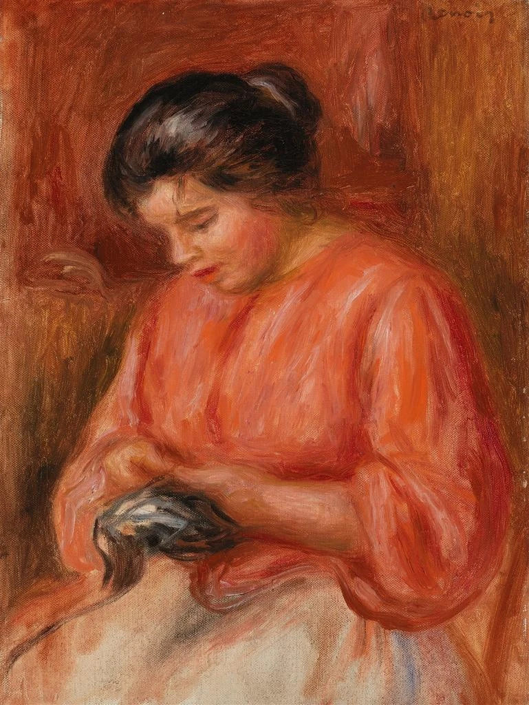 Girl Darning Femme reprisant - Pierre-Auguste Renoir