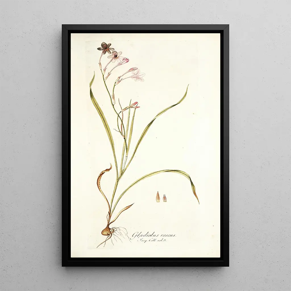 Reproduktionen av Gladiolus roseus är ett perfekt dekorativt inslag för att tillföra naturens skönhet till ditt hem. Oavsett om det är i ett vardagsrum, ett kontor eller ett sovrum, passar detta konsttryck harmoniskt in i olika inredningsstilar, från klassiskt till modernt. Dess utskriftskvalitet garanterar trohet mot färger och detaljer i originalverket, vilket ger en tydlig estetisk attraktion. Genom att välja detta konsttryck gör du ett val för en förfinad dekoration som väcker lugn och naturens skönhet, samtidigt som du berikar ditt boende med ett tidlöst konstverk.