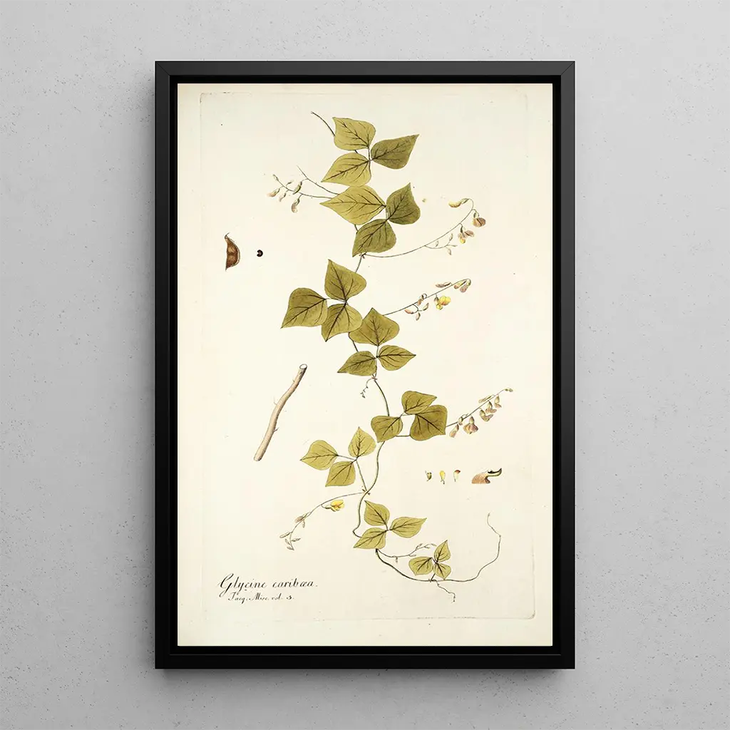 Konsttrycket Glycine caribaea är ett perfekt dekorativt föremål för att försköna ditt hem, oavsett om det är i ett vardagsrum, ett kontor eller ett sovrum. Den livfulla färgpaletten och den delikata stilen ger en frisk och exotisk touch till varje utrymme. Kvaliteten på trycket garanterar en trohet mot originalets detaljer, samtidigt som det erbjuder en obestridlig estetisk attraktion. Genom att välja detta konsttryck, väljer du ett verk som inte bara berikar din inredning, utan också framkallar skönheten i den tropiska naturen, och skapar en lugnande och inspirerande atmosfär.