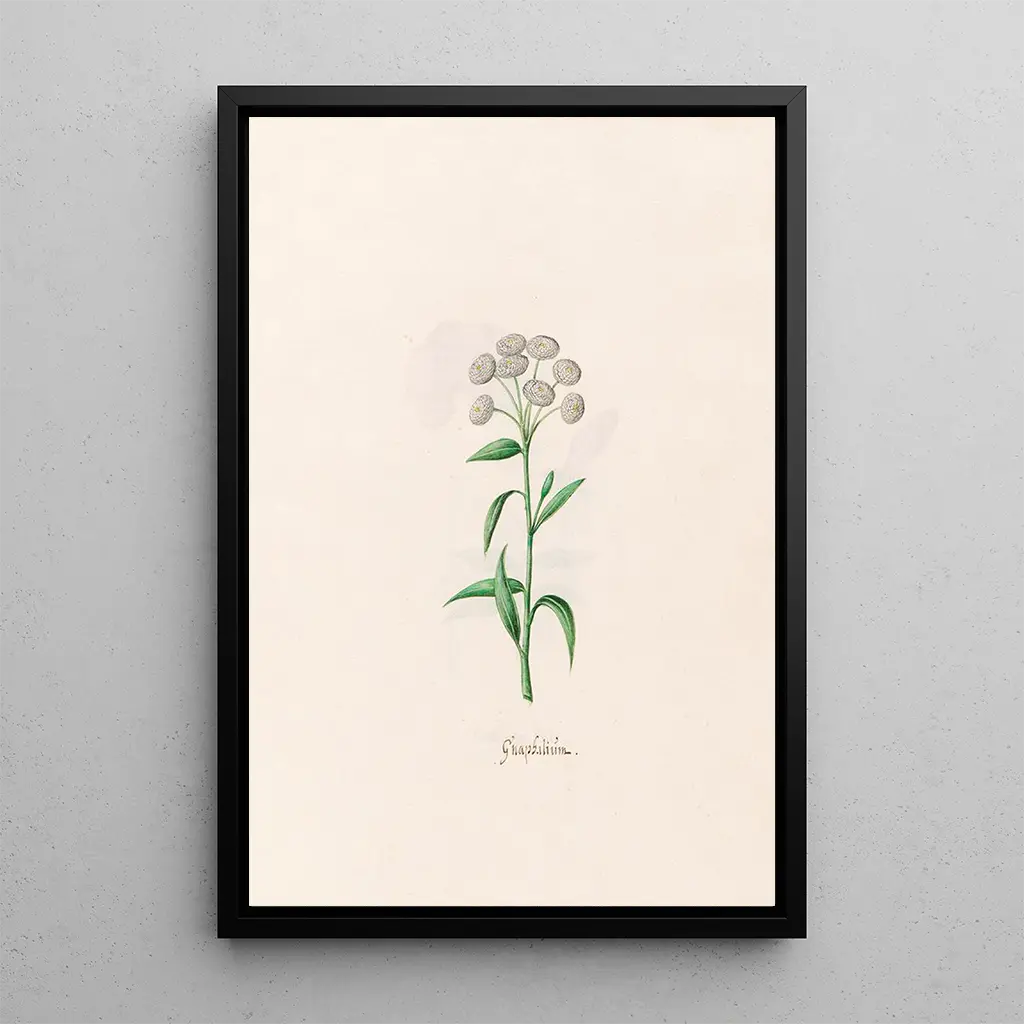Konsttrycket av Gnaphale är ett perfekt val för att berika din inredning, oavsett om det är i ett vardagsrum, ett kontor eller ett sovrum. Dess lugnande färgpalett och eleganta design skapar en lugn och välkomnande atmosfär. Kvaliteten på konsttrycket garanterar trohet mot originalverket, vilket gör det möjligt att uppskatta varje nyans och detalj. Genom att integrera detta konsttryck i din inredning tillför du en touch av natur och sofistikering, och skapar en inspirerande och harmonisk miljö.