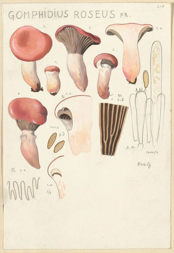 I detta fascinerande verk fördjupar sig Hans Baldung i den mystiska världen av svampar med sin representation av Gomphide rose. De delikata nyanserna av rosa och beige blandas harmoniskt, vilket skapar en atmosfär som är både mjuk och fängslande. Baldungs teknik, kännetecknad av noggranna detaljer och subtil belysning, framhäver den unika texturen hos denna svamp. Verket inbjuder betraktaren att betrakta naturens flyktiga skönhet, samtidigt som det väcker nyfikenhet för de hemligheter som växtriket rymmer.