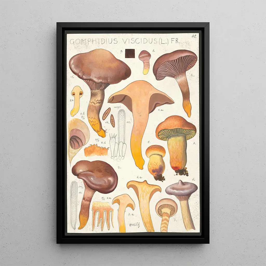 Gomphide visqueux L Fr, som avbildats av Hans Baldung, är ett konsttryck som fångar själva essensen av mykologi. Med jordnära nyanser och en nästan taktil textur, framkallar denna målning fuktigheten i skogsbryn och den rika biologiska mångfalden. Baldung, med sin talang för detaljer, lyckas göra detta levande organismer nästan påtaglig, och bjuder in betraktaren att dyka in i en värld där naturen avslöjar sig i all sin prakt. Atmosfären som utstrålar av detta konsttryck är både fascinerande och lugnande, en verklig hyllning till svamparnas skönhet.
