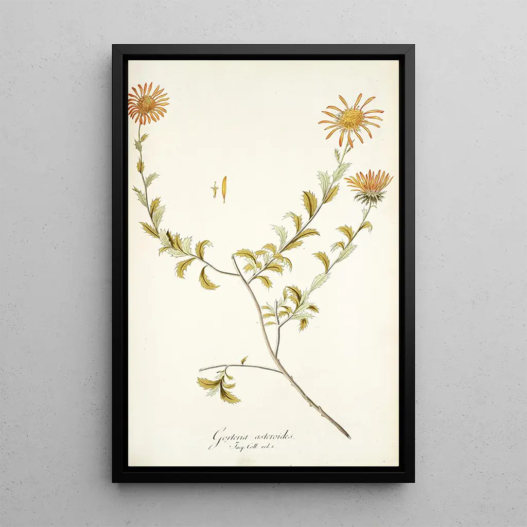 Konsttrycket av Gorteria asteroides är ett perfekt dekorativt föremål för att tillföra naturens skönhet till ditt hem. Oavsett om det är i ett vardagsrum, ett kontor eller ett sovrum, kommer denna tavla att tilltala med sin kvalitet och trohet mot originalverket. De livfulla färgerna och de minutiösa detaljerna kommer att fånga blickar och väcka samtal. Genom att välja denna duk, väljer du en dekoration som förenar kultur och estetik, samtidigt som du hyllar blomsterpraktens skönhet. Detta konsttryck är inte bara en dekorativ tillgång, utan också en påminnelse om naturens vikt i vårt dagliga liv.