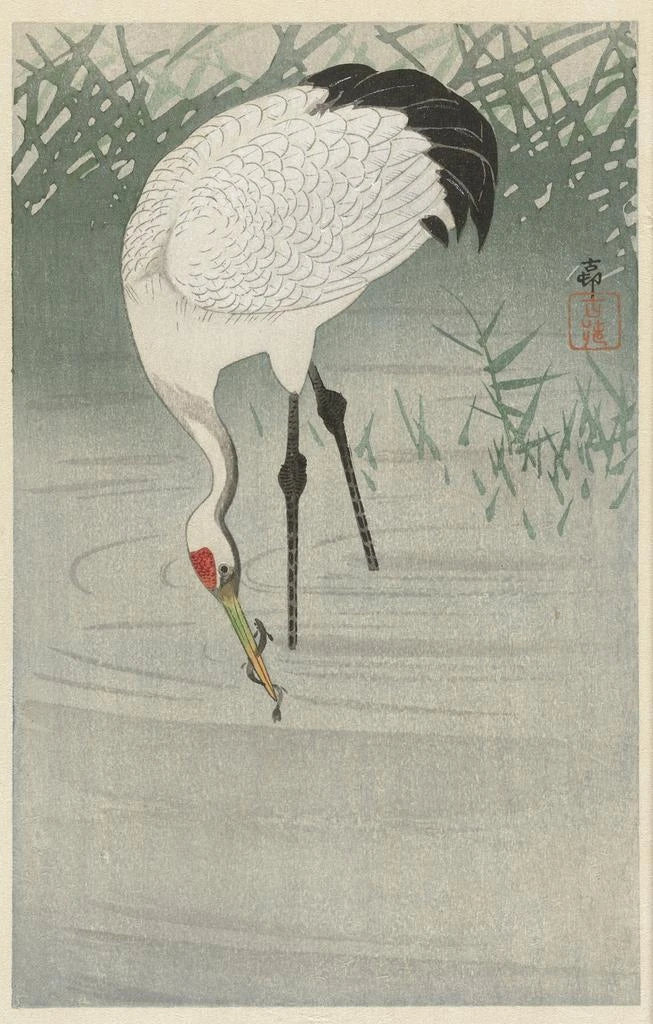 Konsttryck | Grue pêchant dans l'eau peu profonde - Ohara Koson