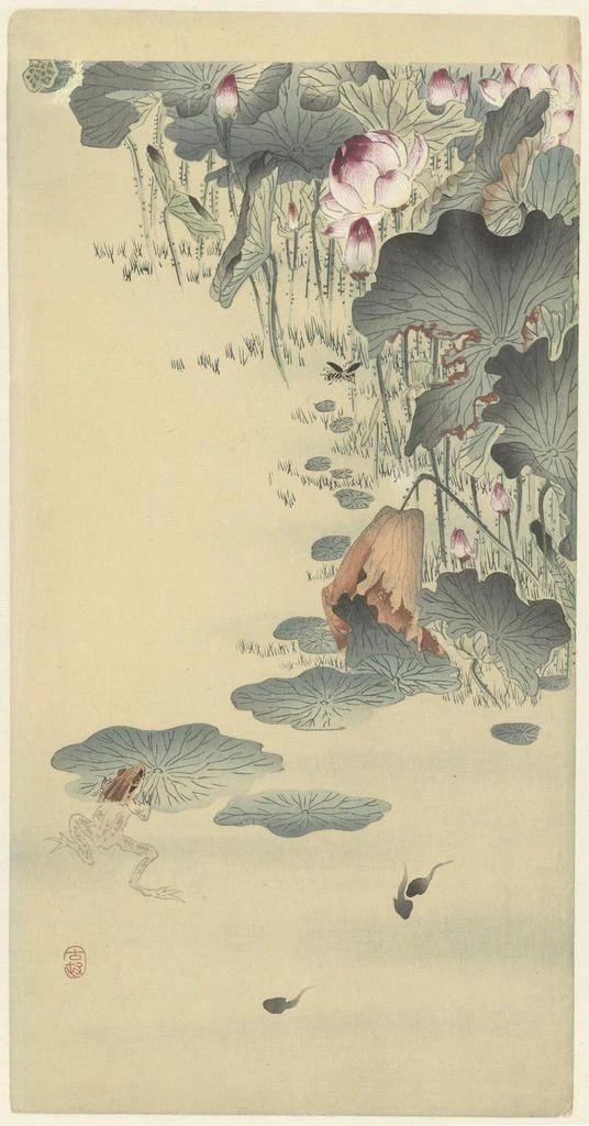Konsttryck | Groda och grodyngel - Ohara Koson