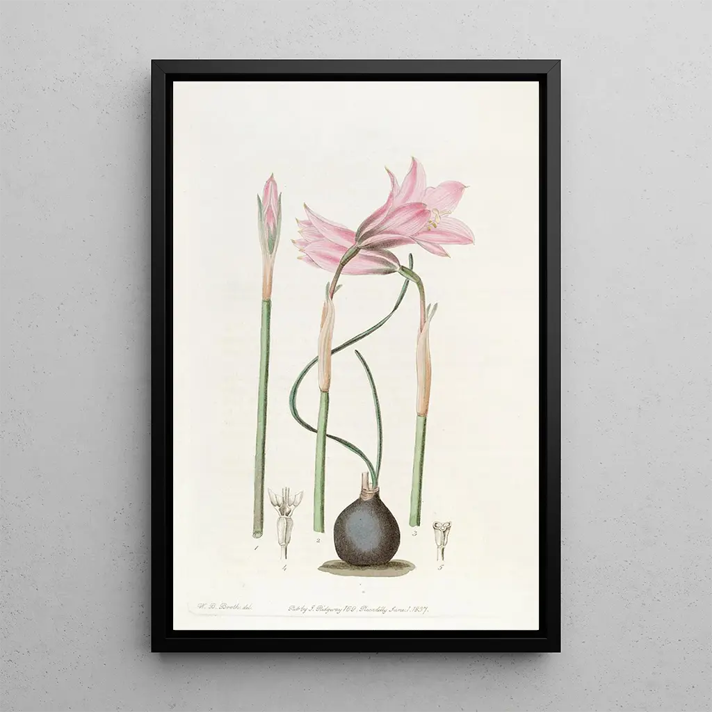 Konsttryck "Habranthus à feuilles fines" av M. Booth framstår som en hyllning till den naturliga skönheten. De livfulla färgerna och de delikata nyanserna av blommorna framkallar en vårfräschör, medan den harmoniska kompositionen drar ögat mot blomstens hjärta. Akvarelltekniken, använd med finhet, fångar bladenas genomskinlighet och färgernas ljusstyrka, vilket skapar en atmosfär som är både lugnande och inspirerande. Varje detalj, från bladnervor till ljusreflexer, vittnar om noggrann observation och en passion för botanik.