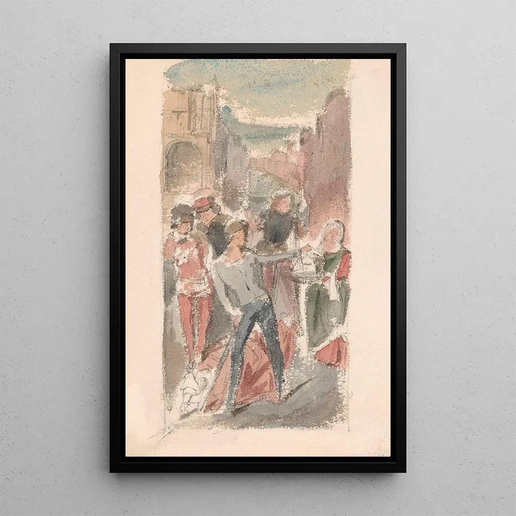 Konsttrycket av verket "Décapitation de Saint Jean-Baptiste" av Nicaise De Keyser fördjupar oss i en scen som är både tragisk och fängslande. Kompositionen kännetecknas av ett intensivt ljusspel som framhäver ansiktena på figurerna, vilket förstärker känslan i ögonblicket. De mörka färgerna, dominerade av nyanser av rött och svart, skapar en tung atmosfär, nästan påtaglig. De Keysers teknik, som kombinerar realism och expressionism, gör det möjligt att känna den dramatiska spänningen i denna bibliska scen. Varje detalj, från draperier till ansiktsuttryck, bidrar till den visuella och emotionella effekten av detta verk.