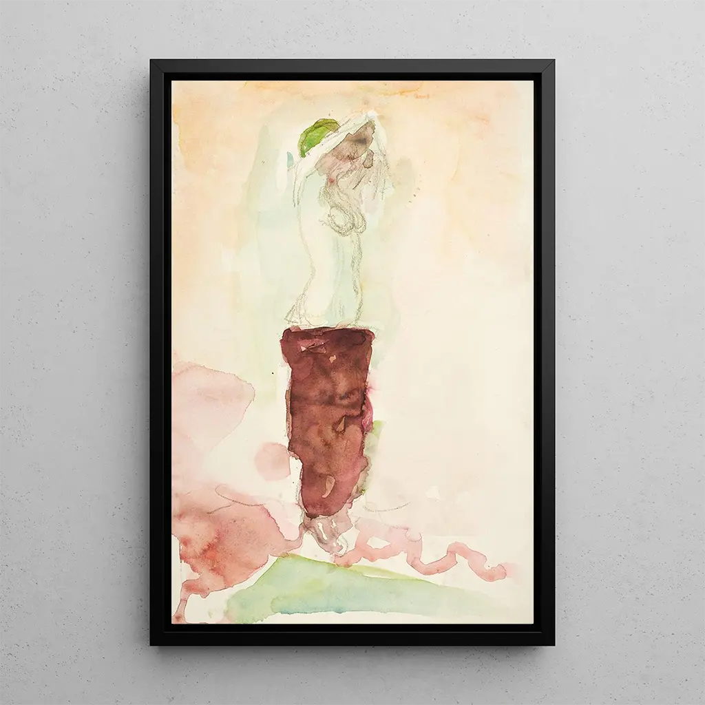 I "Demi-nu debout" fördjupar Edvard Munch oss i en värld där sensualitet och introspektion möts. Den kvinnliga kroppen, delvis avslöjad, är avbildad med en finstämdhet som framhäver den mänskliga formens skönhet. De varma färgerna, blandade med mörkare nyanser, skapar en atmosfär som är både intim och melankolisk. Munchs teknik, med sina uttrycksfulla penseldrag, ger liv åt detta konsttryck och gör känslan som avtecknar sig tydlig. Varje detalj, varje skugga, bjuder in betraktaren att reflektera över den mänskliga känslans komplexitet och dualiteten mellan exponering och återhållsamhet.