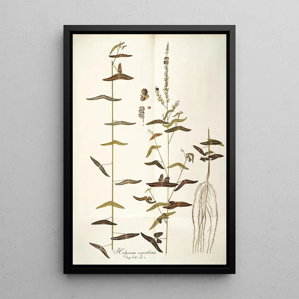 Konsttrycket av "Hedysarum vespertilionis" är ett dekorativt föremål som kommer att försköna ditt boende, oavsett om det är i ett vardagsrum, ett kontor eller ett sovrum. Dess utskriftskvalitet garanterar en anmärkningsvärt trogen återgivning av detaljerna i det ursprungliga verket, vilket gör detta konsttryck till en verklig estetisk tillgång. Genom att integrera detta konsttryck i din inredning tillför du en touch av natur och sofistikering till ditt hem. Detta konsttryck är inte bara en hyllning till botanisk konst, utan också en inbjudan till eftertanke och uppskattning av den naturliga skönheten.