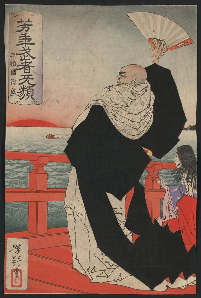 Tsukioka Yoshitoshi, född 1839, är en av de sista stora mästarna av ukiyo-e-konst, en traditionell japansk konstform. Påverkad av de omvälvningar som präglade hans tid, särskilt övergången till modernitet, lyckades Yoshitoshi integrera samtida element samtidigt som han respekterade traditionerna. Hans karriär, präglad av ikoniska verk, vittnar om ett djupt engagemang för berättande konst och skildringen av historiska figurer. Heishkoku Kiyomori ingår i en serie verk som utforskar teman som mod och tragedi, vilket gör Yoshitoshi till en oumbärlig figur i japansk konsthistoria.