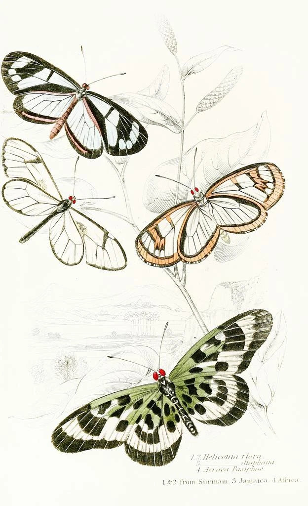 Målning Heliconia Flora Heliconia Diaphana Acraea Pasiphae - James Duncan | Konsttryck