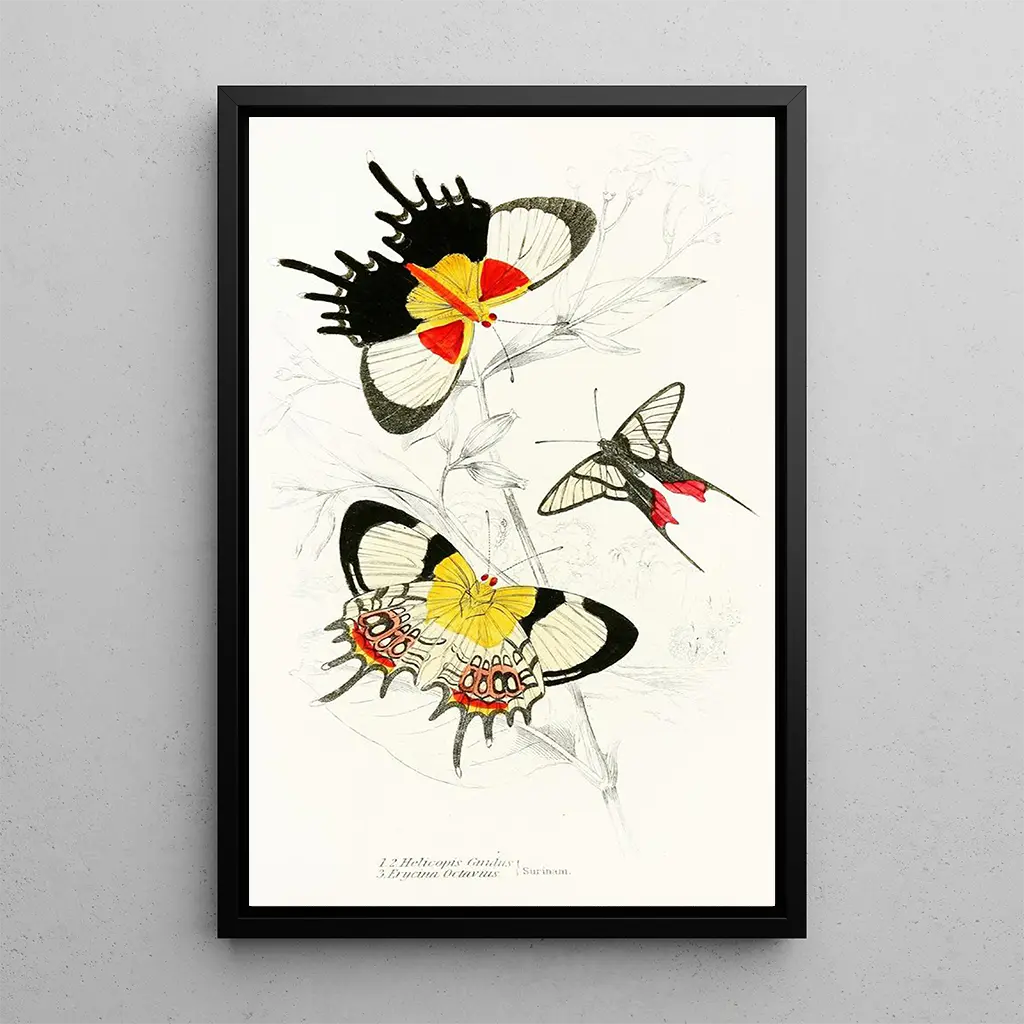 Helicopis Gnidus Erycina Octavius är ett dekorativt konsttryck som kommer att berika ditt hem med sin charm och elegans. Oavsett om det är i ett vardagsrum, ett kontor eller ett sovrum, tillför detta konstverk en touch av natur och lugn. Dess utskriftskvalitet garanterar en trohet mot detaljerna, så att du kan njuta fullt ut av konstverkets skönhet. Med sitt estetiska tilltal passar detta konsttryck till olika inredningsstilar och tillför en frisk och poetisk känsla till ditt boende.
