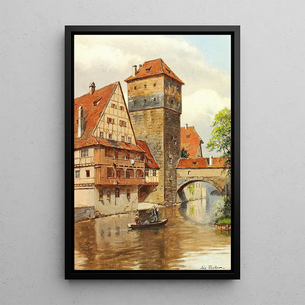 August Fischer, verksam i början av 1900-talet, är en konstnär vars verk speglar de urbana omvandlingarna i hans tid. Påverkad av den konstnärliga rörelsen under sin epok fokuserar han på att skildra stadsliv och stadslandskap. Hans konsttryck, som "Henckerstieg à Nuremberg", vittnar om en särskild uppmärksamhet på arkitektoniska detaljer och atmosfären i platserna. Fischer lyckades fånga essensen av det dagliga livet, vilket gör honom till en viktig konstnär för att förstå stadens utveckling under denna period.