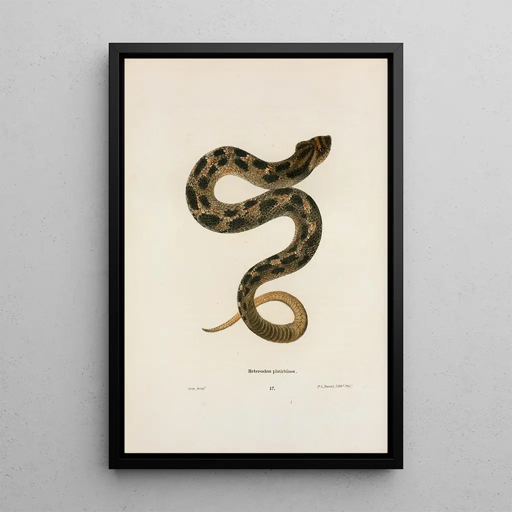 Konsttrycket av Heterodon med platt nos är ett dekorativt tillskott som berikar varje utrymme, oavsett om det är ett kontor, ett vardagsrum eller ett sovrum. Dess utskriftskvalitet och äkthet gör det till en tavla som drar till sig uppmärksamhet samtidigt som den tillför en touch av naturen till ditt hem. Detta estetiska val begränsar sig inte till konst, utan väcker också reflektion kring biologisk mångfald och behovet av att bevara vår miljö. Genom att integrera denna väggbonad i din inredning skapar du ett inspirerande utrymme som hyllar skönheten i den naturliga världen.