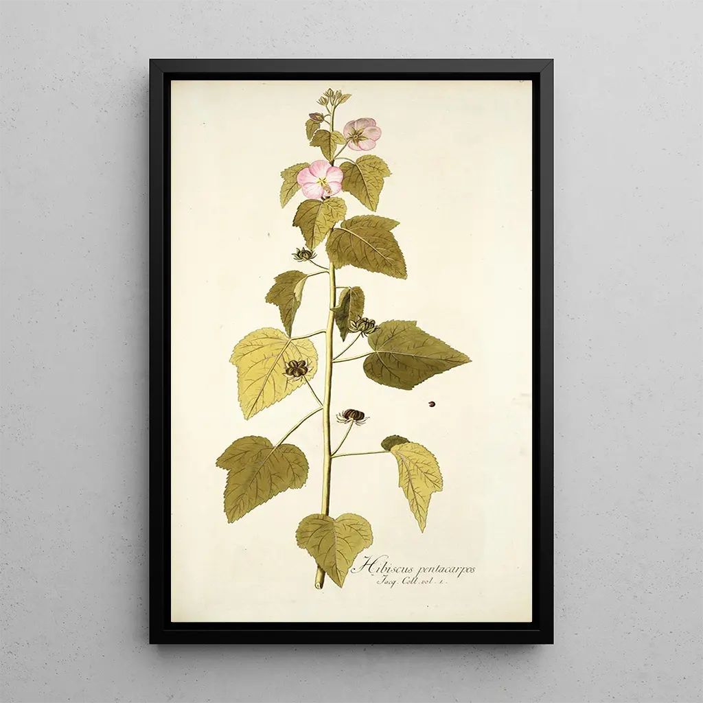 Konsttrycket av Hibiskus pentacarpos är ett klokt dekorativt val för att försköna ditt hem. Oavsett om det är i vardagsrummet, på kontoret eller i sovrummet, tillför denna duk en färgklick och friskhet. Dess utskriftskvalitet garanterar enastående trohet mot detaljer och nyanser i originalverket, samtidigt som den erbjuder en estetisk attraktion som garanterat väcker sinnena. Genom att integrera detta konsttryck i din inredning skapar du en harmonisk miljö där naturens skönhet står i centrum.
