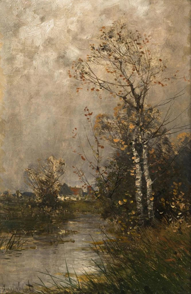 "Automne" de Johann Jungblut évoque la beauté éphémère de la saison des feuilles dorées. La toile déploie une palette de couleurs chaudes, allant des oranges éclatants aux bruns profonds, créant une atmosphère nostalgique et sereine. Les arbres, majestueux et chargés de feuillage, semblent danser sous le souffle du vent, tandis que le sol est tapissé de feuilles mortes. La technique de Jungblut, mêlant réalisme et touches impressionnistes, invite à une contemplation paisible de la nature en mutation, capturant l'essence même de l'automne.